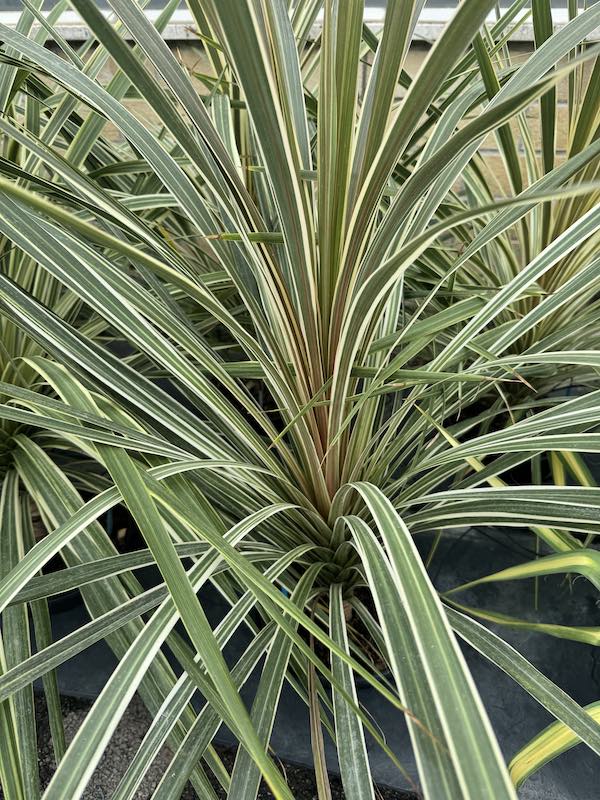 La Cordyline australis ‘Torbay Dazzler’ è un piccolo albero eretto, simile ad una palma. È caratterizzato da grandi foglie lanceolate, con striature e margini color crema.