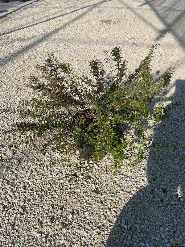 La Lonicera pileata è un fitto arbusto espanso, sempreverde, con foglie appaiate, da ovato-oblunghe a oblunghe-lanceolate, lucide, verde scuro, lunghe fino a 3 cm.