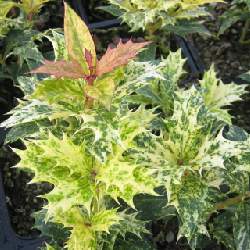 - ‘Tricolor’: foglie variegate di colore rosa, giallo oro e verde, lucente, a margini dentati, assomigliano a quelle dell`agrifoglio. A crescita lenta.